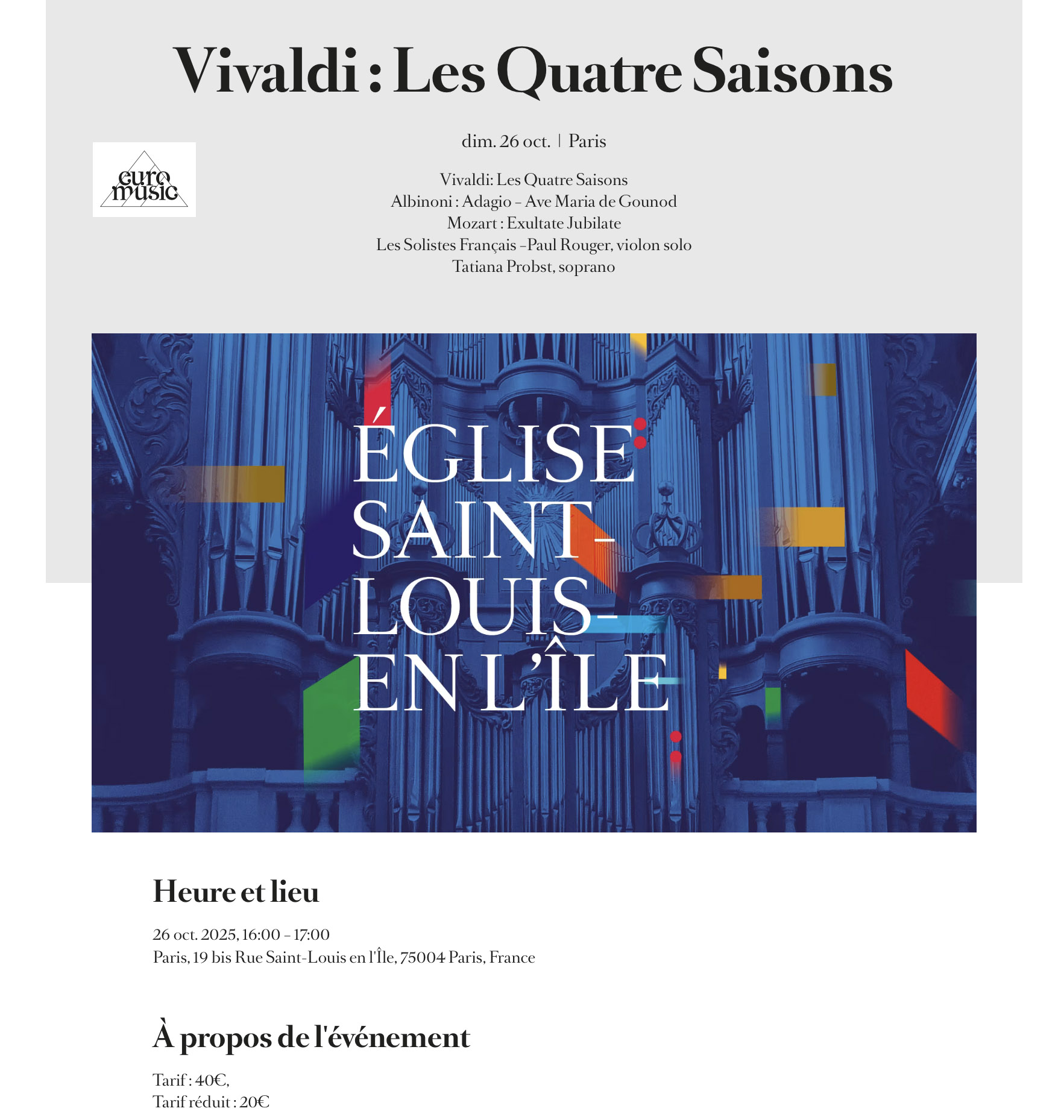 Concerts à la paroisse